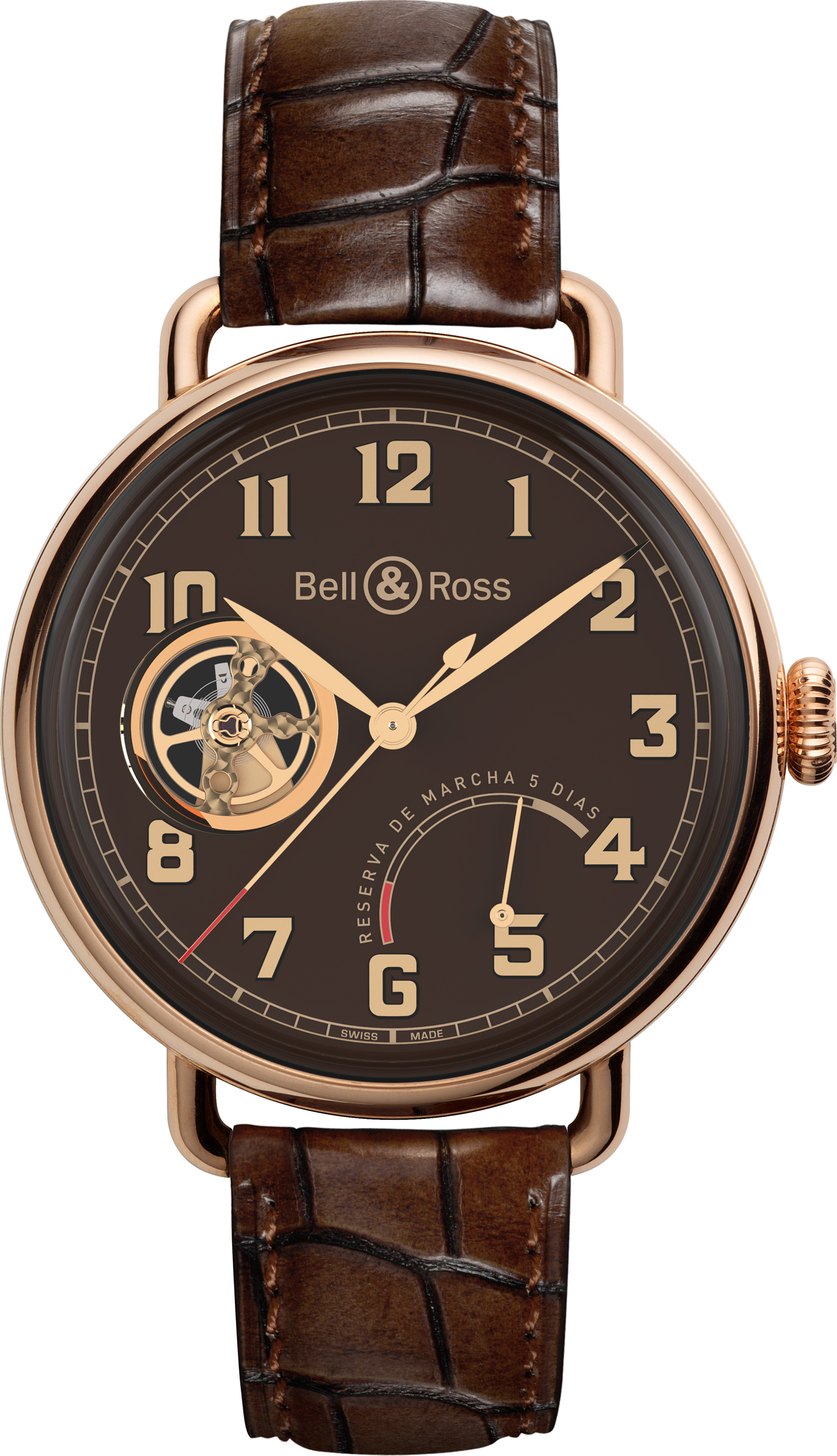 Il movimento ha una riserva di carica di 5 giorni grazie al doppio bariletto, il bilanciere è a vista lato quadrante, analogia che ricorda la preziosità del “cuore” del sigaro. Il Calibro BR-202 a carica manuale ha 28.800 Ah/h e finiture adeguate alla tradizione. Dal fondo in vetro zaffiro si ammirano la platina a 3/4 e il ponte del bilanciere. La cassa in oro rosso è rotonda, ø mm 42, con la corona pesa più di 37 g (anche la fibbia è d’oro e supera i 6 g); le anse sottili sono a filo; sul quadrante marrone indici ricoperti di polvere d’oro un po’ come le fascette con la marca dei sigari, design ripreso anche per personalizzare il cofanetto. Le scritte, in omaggio a Cuba, sono in spagnolo. Il cofanetto in ebano di Macassar è trasformabile in una scatola per 50 sigari con umidificatore e igrometro, l’interno è in kaya marrone.