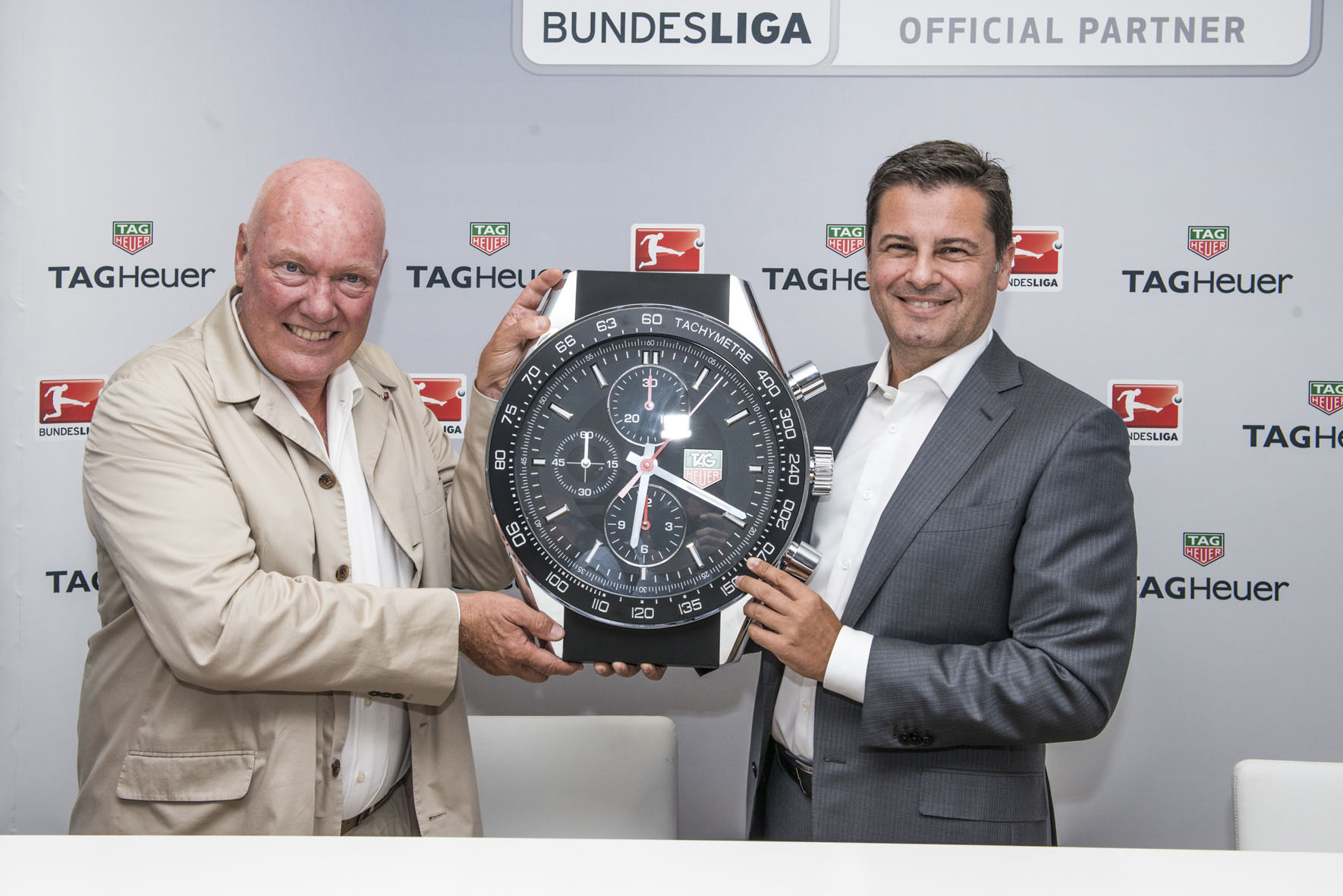 Jean Claude Biver CEO di TAG Heuer, presidente Divisione orologeria del gruppo LVMH e Christian Seifert CEO della Bundesliga tedesca hanno annunciato il 1° agosto una partnership pluriennale, che assume connotazioni diverse rispetto a una normale sponsorizzazione.