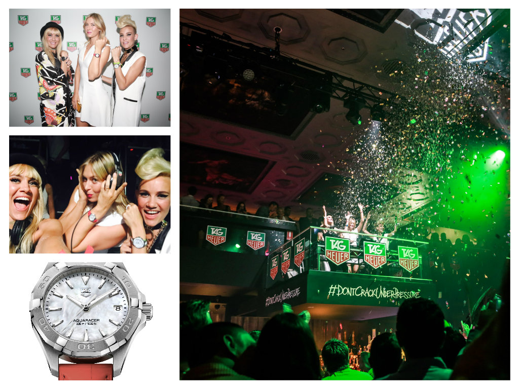 Durante un party organizzato a Melbourne dalla Maison orologiera, hanno insegnato a Maria Sharapova da anni legata al Marchio elvetico a usare cuffie e mixer. Durante la serata Maria Sharapova indosava un Aquaracer Lady 300 m.Daring Red, il cinturino ha la stessa tonalità del completo scelto dalla tennista per gli Australian Open, un colore molto adatto anche per festeggiare San Valentino e che è stato realizzato appositamente per l’evento, alcuni esemplari sono stati assegnati alla boutique TAG Heuer di Melbourne. Le due gemelle invece indossavano i TAG Heuer Formula 1 Lady in acciaio e ceramica.