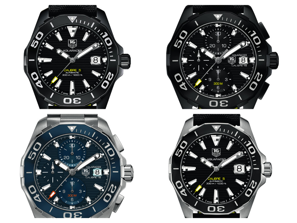 Chi segue con passione la storia dell’orologeria e dei Marchi sa poi che sin dal XIX secolo Heuer aveva prodotto un orologio con una cassa dalle caratteristiche di impermeabilità, certo nulla a che vedere con l’Aquaracer 500M che resiste alla pressione incontrata a 500 metri di profondità, ma era pur sempre un inizio promettente. Comunque la nuova serie degli Aquaracer 300M presentata nel 2015 resiste alla pressione che si sviluppa a 300 metri di profondità e ha anche altre ambizioni oltre al mare. ne allarga l’impiego al cielo con il paracadutismo e alla montagna sia in inverno sia in estate con le scalate in bicicletta. Infatti TAG Heuer quest’anno è Official Timekeeper nella Haute Route 2015 che dal 15 agosto al 6 settembre vedrà 1600 ciclisti impegnati ad affrontare le salite più impegnative dell’arco alpino.