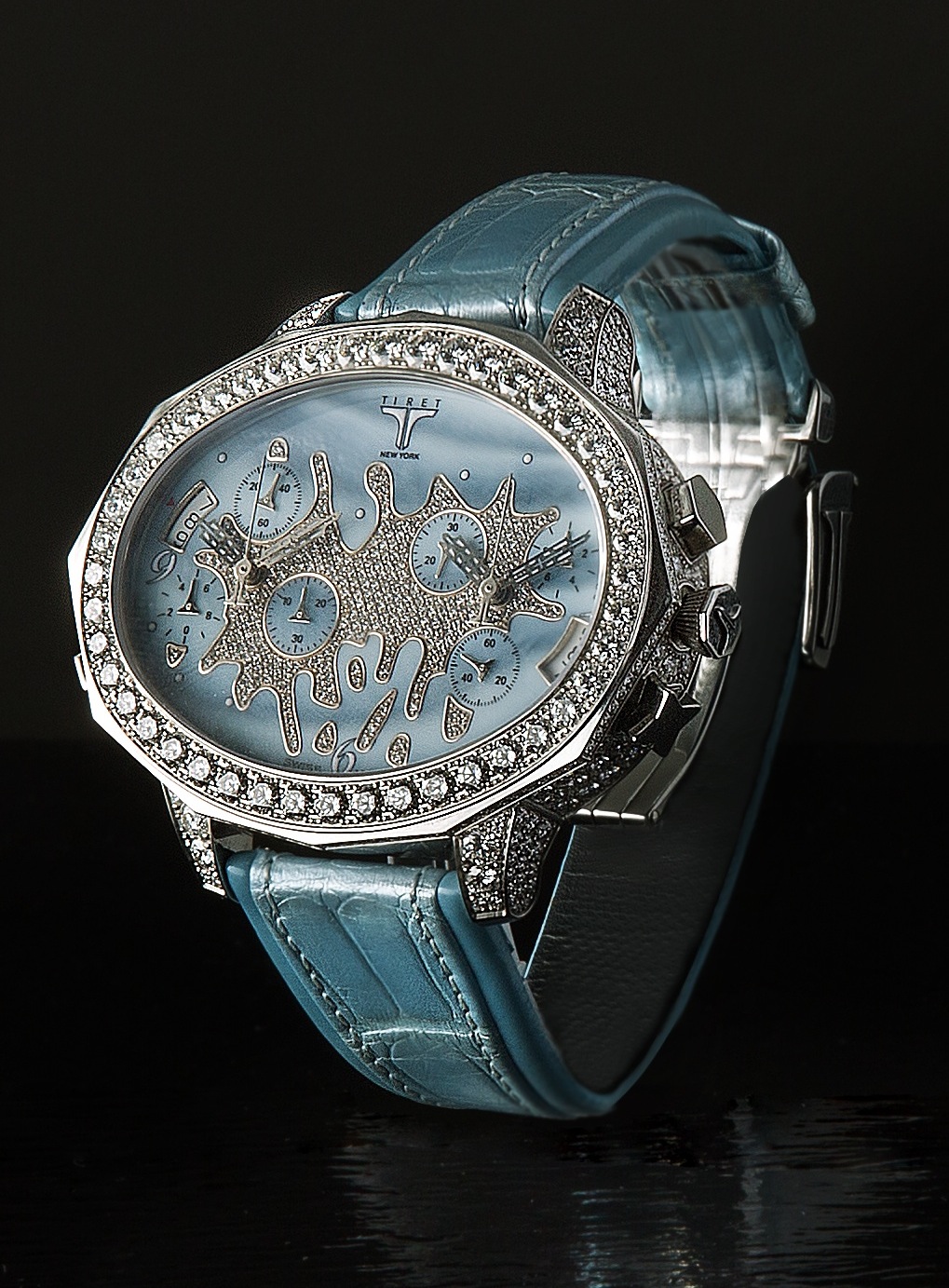 Pochi anni più tardi presentava a Los Angeles un tourbillon realizzato da Antoine Preziuso e la collaborazione con il Maestro ginevrino continua tuttora con pezzi unici, che rispondono alle esigenze di una clientela internazionale. Per automatici e cronografi invece i movimenti ETA sono realizzati e decorati appositamente per Tiret, sempre nell’ottica del lusso e dell’eleganza. E per inquadrare meglio la figura internazionale di Daniel Lazar ricordiamo che questo designer è stato anche il “padre”, per così dire, del marchio Jacob e Co. che ha ideato e fondato.