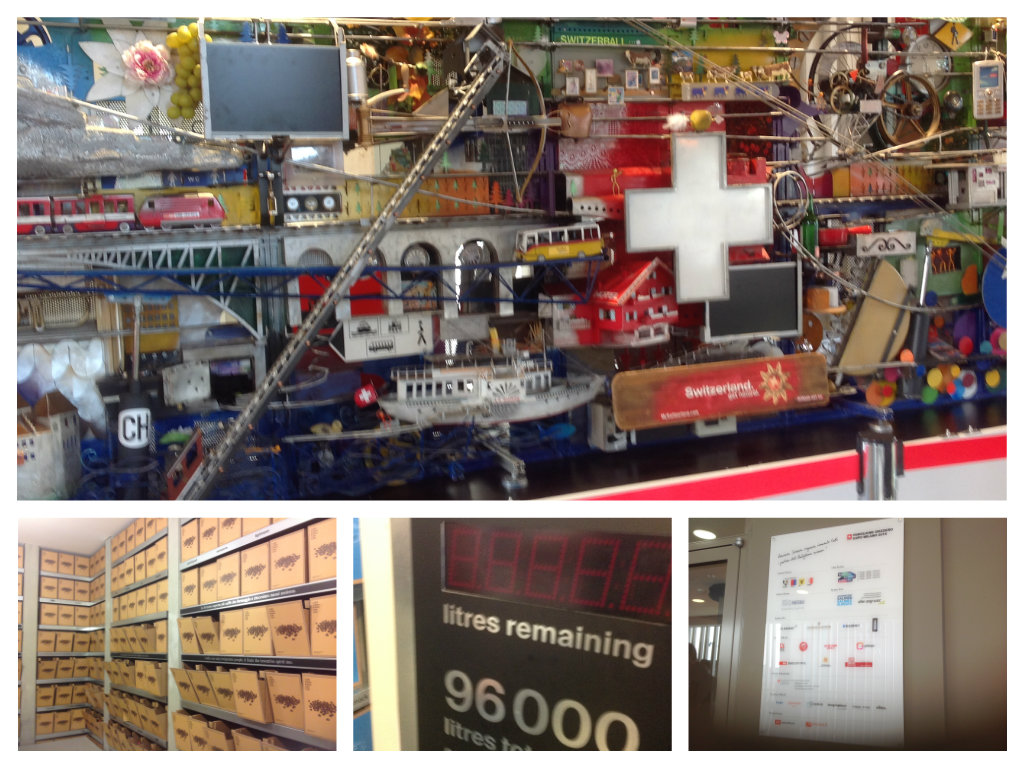 Come un gande meccano i vari aspetti della Confederazione, le scorte di caffè, di acqua monitorata da computer e i partner del padiglione