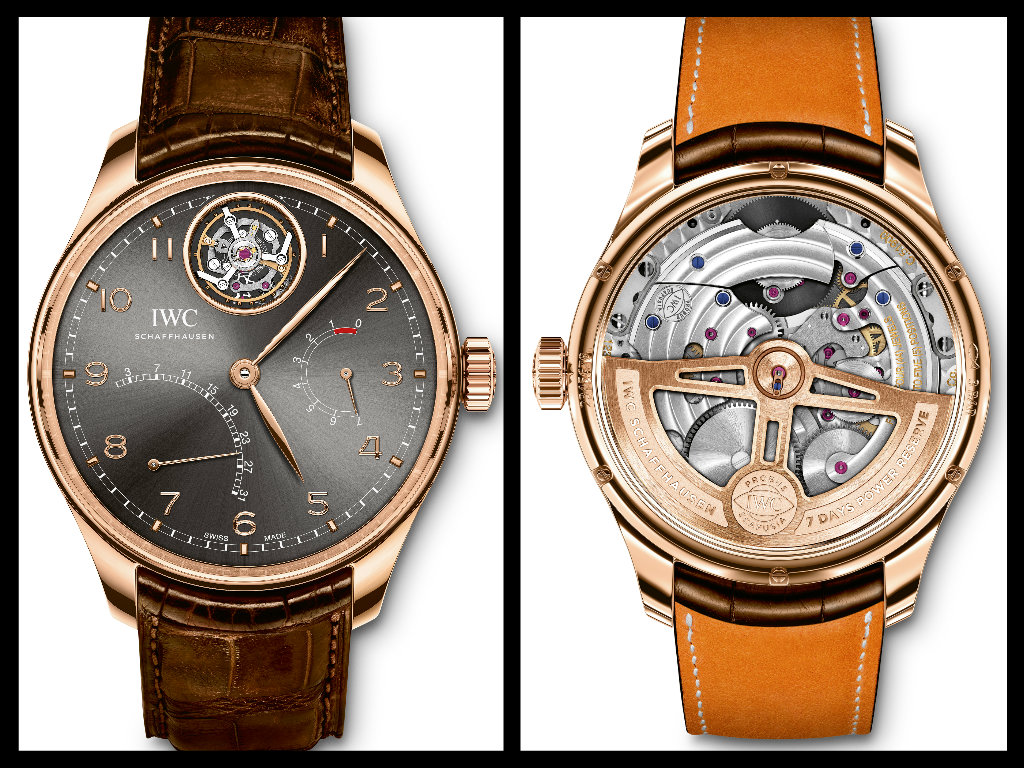 Il modello con Calendario Perpetuo 7 gg di carica (anno in 4 cifre, fasi lunari per i due emisferi) in oro rosso o bianco, viene adesso equipaggiato con il movimento Calibro 52655 della nuova famiglia 52.000. Al vertice il Portoghese Ripetizione Minuti e il Tourbillon Mystère retrograde 7 g d carica, quest’ultimo sfoggia un vetro più bombato e un più confortevole attacco del cinturino, con la cassa in platino ha quadrante argenté, in oro rosso il quadrante è ardoise, una scelta che la Marca di Schaffhausen effettua per molti dei suoi modelli. Imutato il Tourbillon carica manuale. Infine il Ripetizione Minuti è realizzato in edizione limitata, 500 esemplari sia per la cassa in platino sia per quella in oro rosso entrambe ø 44 mm e con quadranti argenté; movimento di Manifattura Calibro 98950.