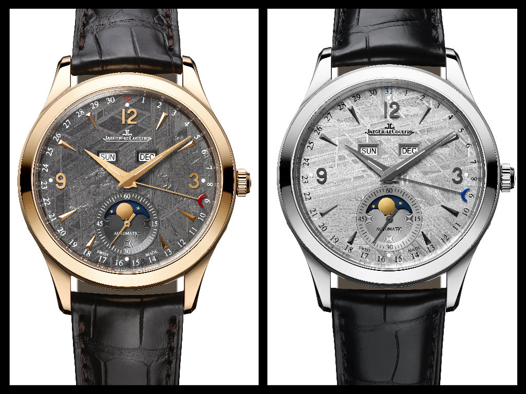 Infine ecco la collezione Master con il Calendar (giorno, data, mese e fasi di luna), Calibro automatico JLC866, cassa in acciaio o oro rosa ø 39 mm, quadrante in meteorite.