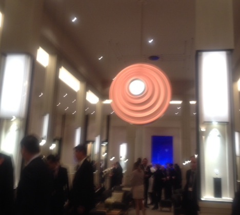 Da ultimo una nota di cronaca: siamo usciti frastornati dalla lunga sessione, ma l’allestimento dello stand ci ha strappato un sorriso: la terra nello spazio è prevalentemente blu? bene nello stand di Jaeger-LeCoultre è raffigurata ironicamente come un’arancia rossa anche se sullo sfondo c’è il blu dell’immenso spazio astronomico.