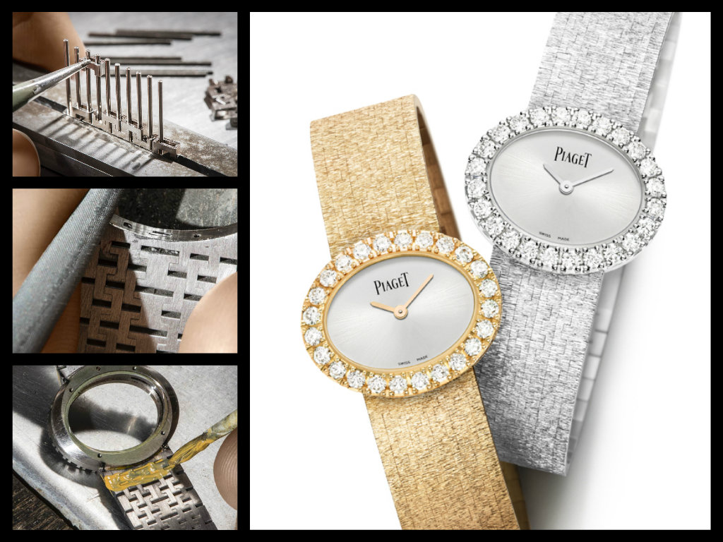 Altre novità presentano riedizioni di orologi gioiello anni ’60-70, con cassa ovale orizzontale (mm 27×22) impreziosita da diamanti (Jacqueline Kennedy ne aveva scelto uno con smeraldi) nei quali è il bracciale Palace ad attirare l’attenzione. È realizzato a mano con estrema abilità e pazienza dai Maestri artigiani della Maison e al termine della lavorazione sembra un serico nastro di tessuto; il movimento è al quarzo. Gli orologi Traditional Oval e Black Tie Vintage Inspiration, presentati nella collezione Extremely Piaget alla Biennales des Antiquaires a Parigi (nuova la versione della foto, sotto) completano, con il bracciale in oro per l’automatico Altiplano, le novità 2015 della Maison ginevrina. Quest’anno vista la concomitanza della Biennale svoltasi in settembre, Piaget non ha presentato gioielli, dedicando l’intera sessione del SIHH agli orologi.