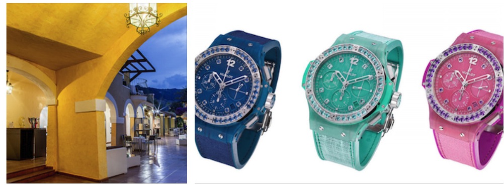 Da una gioielleria icona della Versilia a una boutique monomarca temporanea in Sardegna. Hublot e Rocca 1794 l’hanno aperta nel Fort Village Sardegna a S.Margherita di Pula; nella foto il punto vendita di fronte al mare e i nuovi coloratissimi segnatempo (manca solo il modello arancione).