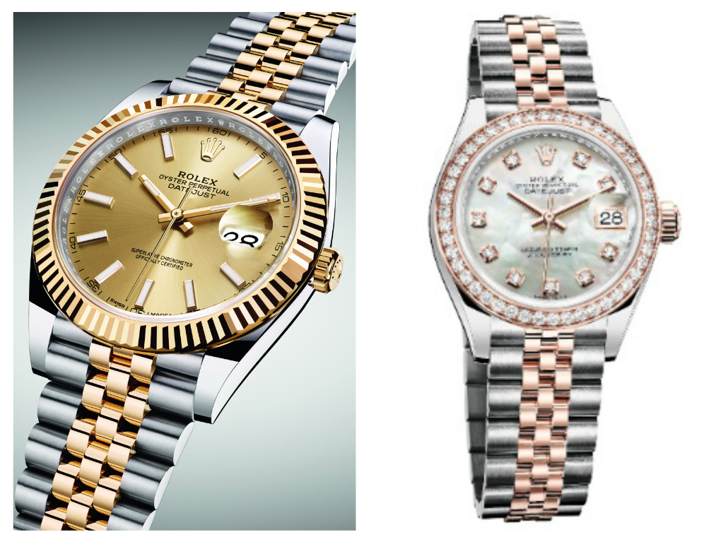 Icona della Marca per noi resta l’Oyster Perpetual Datejust. La nuova versione ha la cassa ø 41 mm in acciaio 904L, lunetta zigrinata o liscia, corona Twinlock; migliorato esteticamente l’inserimento sotto la lunetta del bracciale (Jubilé o Oyster) con maglie centrali in oro giallo o Everose. Sul quadrante champagne o sundust, lancette in oro e indici in oro o diamanti. Come sempre vetro zaffiro con lente Cyclope sulla data. Il movimento è il Calibro 3235, coperto da molti brevetti, sviluppato e prodotto in house: ha la spirale Parachrom blu in lega paramagnetica e curva Rolex brevettata, scappamento Chronergy in nichel-fosforo insensibile ai campi magnetici; rotore Perpetual e bariletto assicurano 70 ore di autonomia. Da non dimenticare per i polsi femminili gli Oyster Rolesor Lady Datejust 28, cassa ø 28 mm, in acciaio 904L e lunetta zigrinata in oro Everose o con diamanti, quadrante in madreperla, indici in oro o con diamanti, movimento automatico Calibro 2236 di Manifattura. La versione più preziosa ha il quadrante con diamanti a pavé e ci sono diamanti anche sulle maglie del bracciale.