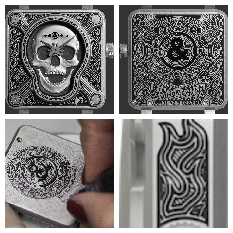 Per il lancio in Italia dello Skull Burning (a lato alcuni dettagli) Corvo, distributore Bell&Ross, ha scelto il museo milanese Mudec con visita alla mostra di Jean Michel Basquiat (in effetti si possono trovare analogie fra il giovane afroamericano scomparso negli anni ’80 e l’estetica dell’orologio). Alla serata era presente anche il direttore creativo B&R Bruno Belamich. Infine in due vetrine anche altre novità del 2016, Aviation con l’Hyperstellare, Marine e una retrospettiva di alcuni BR01.