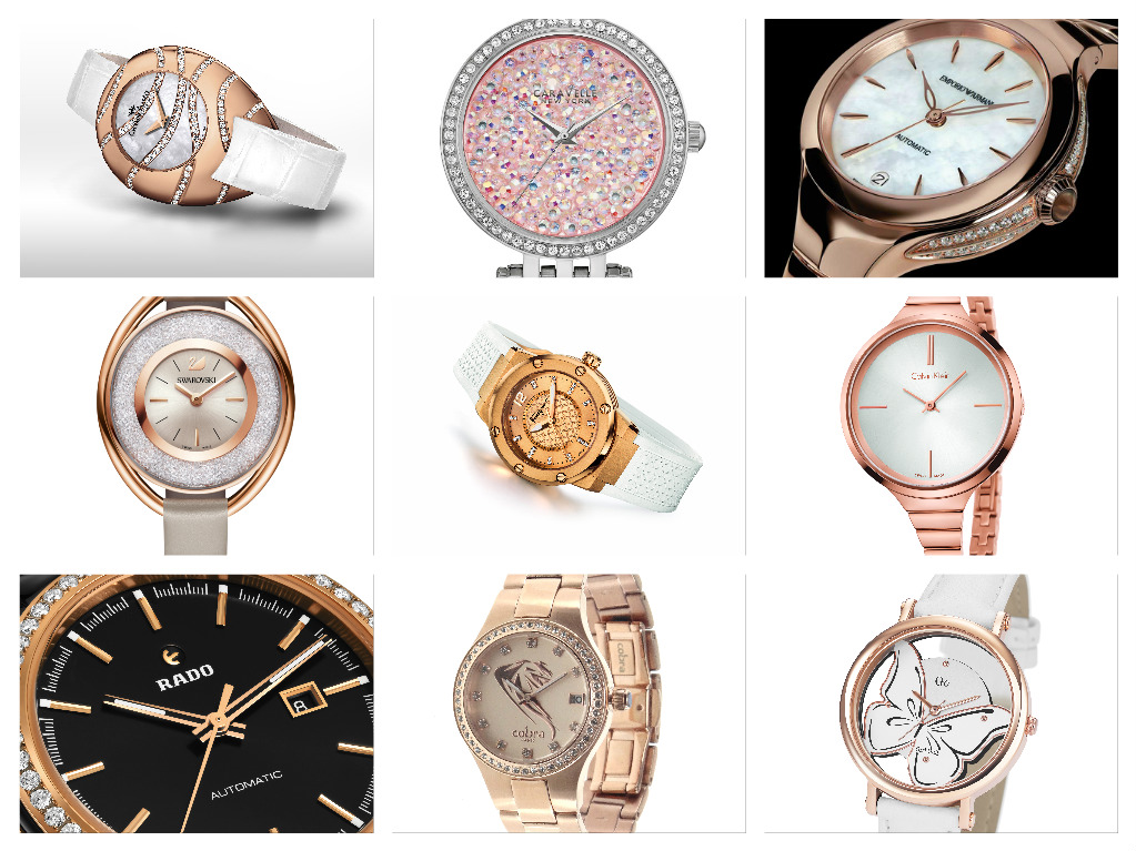 Invece abbiamo visto il rosa in questi orologi femminili del 2015, proposti da Marchi che si sono preparati per tempo con le previsioni cromatiche degli stilisti (i Caravelle New York sono in vendita proprio da questo mese). Da sinistra a destra nella foto sotto, partendo dall’alto, Champs Elysées Rive Blanche in oro rosa e diamanti incastonati a neve; Caravelle New York Ref. 43L194 in acciaio, cristalli e quadrante effetto glitz, Emporio Armani Lady automatico Swiss Collection acciaio placcato oro rosa e diamanti, Swarovski Cristalline Ref.5158544, Ferragamo F.80 Lady, Calvin Klein K4U23626 Original acciaio trattato PVD rosa, Rado dove l’oro rosa si unisce alla ceramica hi-tech nera o bianca e due francesi: Cobra RM62382-3S e GO Ref.698574