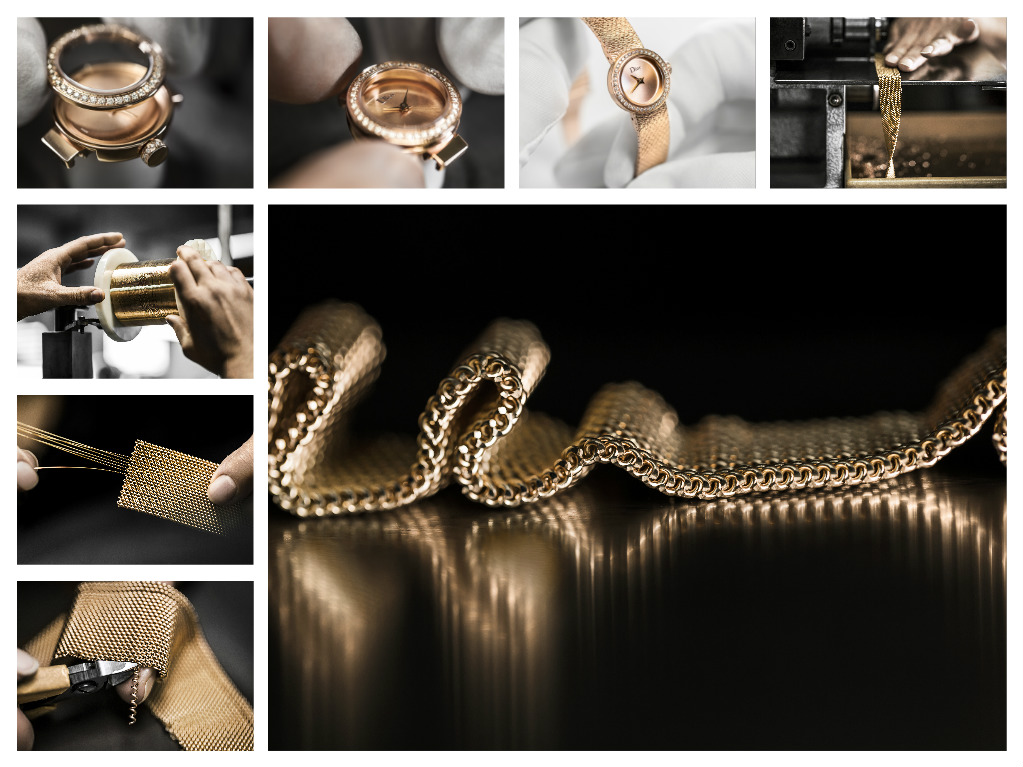 Lo dimostrano i bracciali in maglia milanese dei D de Dior Satine (ø 25 mm) e Mini D de Dior Satine (ø 19 mm) talmente sottili e flessuosi da fare invidia ai tessuti in maglia e meritare la definifzione “satin ribbon”. Delicati gli abbinamenti cromatici tra l’acciaio e i quadranti bianchi, grigi o in madreperla rosa, azzurra o nera; per le versioni in oro rosa o giallo armonia tra i bracciali e i quadranti con superficie satinata. Per tutti i modelli lunette con diamanti e movimento al quarzo. Da ultimo ricordiamo che la D de Dior, disegnato da Victoire de Castellane nel 2003, ha visto diverse modifiche mantenendo sempre una sua grazia speciale, questa volta accentuata dal tradizionale nastro Dior, trasformato in un morbido e prezioso bracciale.