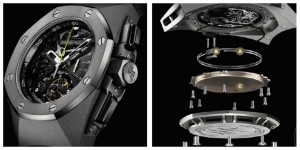 Già l’anno scorso la Maison di Le Brassus aveva presentato i primi risultati ai quali era giunta per una migliore diffusione del suono; gli studi sono proseguiti partendo dal concetto che lega l’orologio a ripetizione all’armonia che si ottiene dalla cassa in legno degli strumenti musicali. Per il team dei ricercatori, di cui faceva parte anche un liutaio, la superficie piana nella cassa di un orologio è diventata una tavola armonica in grado di aumentare la sonorità emessa dai gong. La SuperSonnerie Royal Oak Concept porta l’iconico modello in una dimensione nuova con una cassa in titanio il cui design forse non è ancora quello definitivo ma che comunque appare destinata a un ristretto numero di intenditori