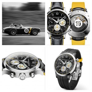 Indirizzato agli sportivi e soprattutto ai nostalgici di una vettura che negli anni ’60 era nei sogni di molti, il Capeland Shelby® Cobra 1963 Competition è un cronografo in edizione limitata, nella collezione nata dalla partnership decisa l’anno scorso tra la Maison ginevrina e la Carroll Shelby Inc. La cassa ø 44 mm in acciaio ADLC levigato-satinato accoglie il movimento automatico Calibro Valjoux 7753; sul retro l’incisione del nome seguito dalla tiratura dell’edizione “One of 1963”; sul vetro zaffiro, dal quale si ammira la massa oscillante in PVD nero, una decalcomania ricorda il mitico n° 15 della Cobra CSX2128 vittoriosa a Sebring nel 1963. Sul quadrante nero trattato Superluminova® a luce verde e con dettagli gialli, anche la scala tachimetrica, sulla lancetta dei secondi il logo della Cobra, il cinturino è in caucciù nero o in alligatore nero con interno in caucciù giallo con tripla fibbia deployante di sicurezza. Il colore giallo è stato deciso per ricordare le scelte cromatiche volute da Allen Grant, uno dei piloti della Cobra, e dal suo amico George Lucas, che aveva diretto American Graffiti e Stars War; entrambi volevano che la vettura spiccasse fra le altre e con le bande oblique di un brillante giallo lo scopo fu raggiunto..