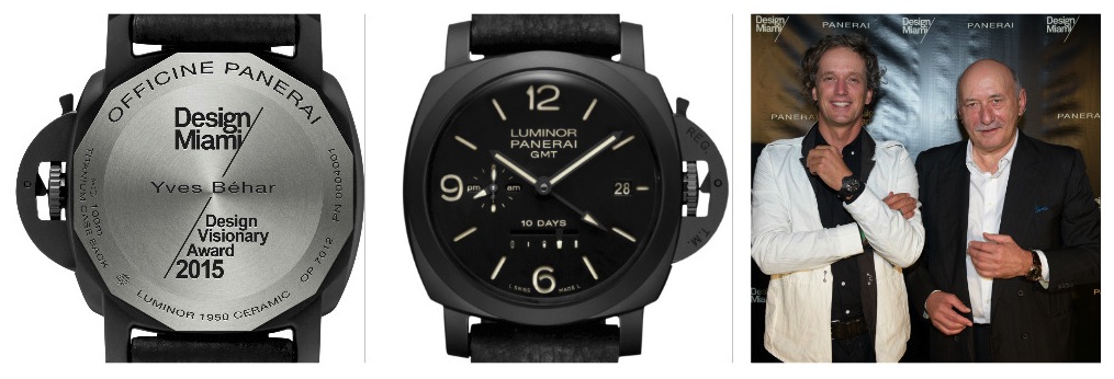 Nello scorso dicembre al Design Miami/ Design Visionary Award, che per la prima volta ha visto la sponsorizzzazione di Panerai, è stato premiato il designer svizzero Yves Béhar per l’impatto rivoluzionario delle sue opere. Angelo Bonati CEO di Panerai, ha consegnato al vincitore un Luminor 1950 Pan 335, 10 Days GMT Automatic Ceramica, sul fondello il nome e quello del Premio. Inoltre il Brand ha deciso di supportare i progetti sociali del designer, le cui opere sono state esposte nel nuovo Flagship Store Panerai nel Design Miami District.