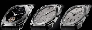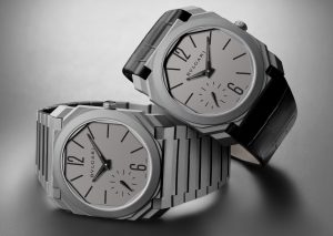 Ormai per l’Octo i record sono quasi un’abitudine, dopo le grandi complicazioni (il Finissimo Tourbillon nel 2014 e il Ripetizione MinUti nel 2016), l’Automatico del 2017 è caratterizzata dal ridotto spessore: complessivamente solo mm.5,15; il movimento è il Calibro BVL138 di 2,23 mm. Cassa e quadrante sono in titanio sabbiato, il cinturino è in pelle, ma si può scegliere anche il bracciale.