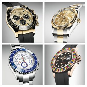 Un nuovo quadrante facilita la lettura dello Yacht Master II che ha anche nuove lancette: per il Cosmograph Daytona in oro giallo, bianco o Everose con lunetta Cerachrom in ceramica nera (un altro brevetto Rolex) il nuovo bracciale Oysterflex è in elastomero rinforzato con una lama metallica. Lo Sky Dweller è in Rolesor giallo o bianco, i quadranti hanno indici luminescenti Chromalight e le lancette sono state allungate. Infine Rolex ha anche orologi-gioiello, che quest’anno hanno visto uno spettacolare Yacht Masster II 40 in oro Everose con lunetta girevole nella quale sono incastonate preziose pietre colorate; alle 12 spicca un diamante triangolare, un taglio di pietra particolarmente difficile. Anche per questo modello il bracciale è il nuovo Oysterflex in elastomero.