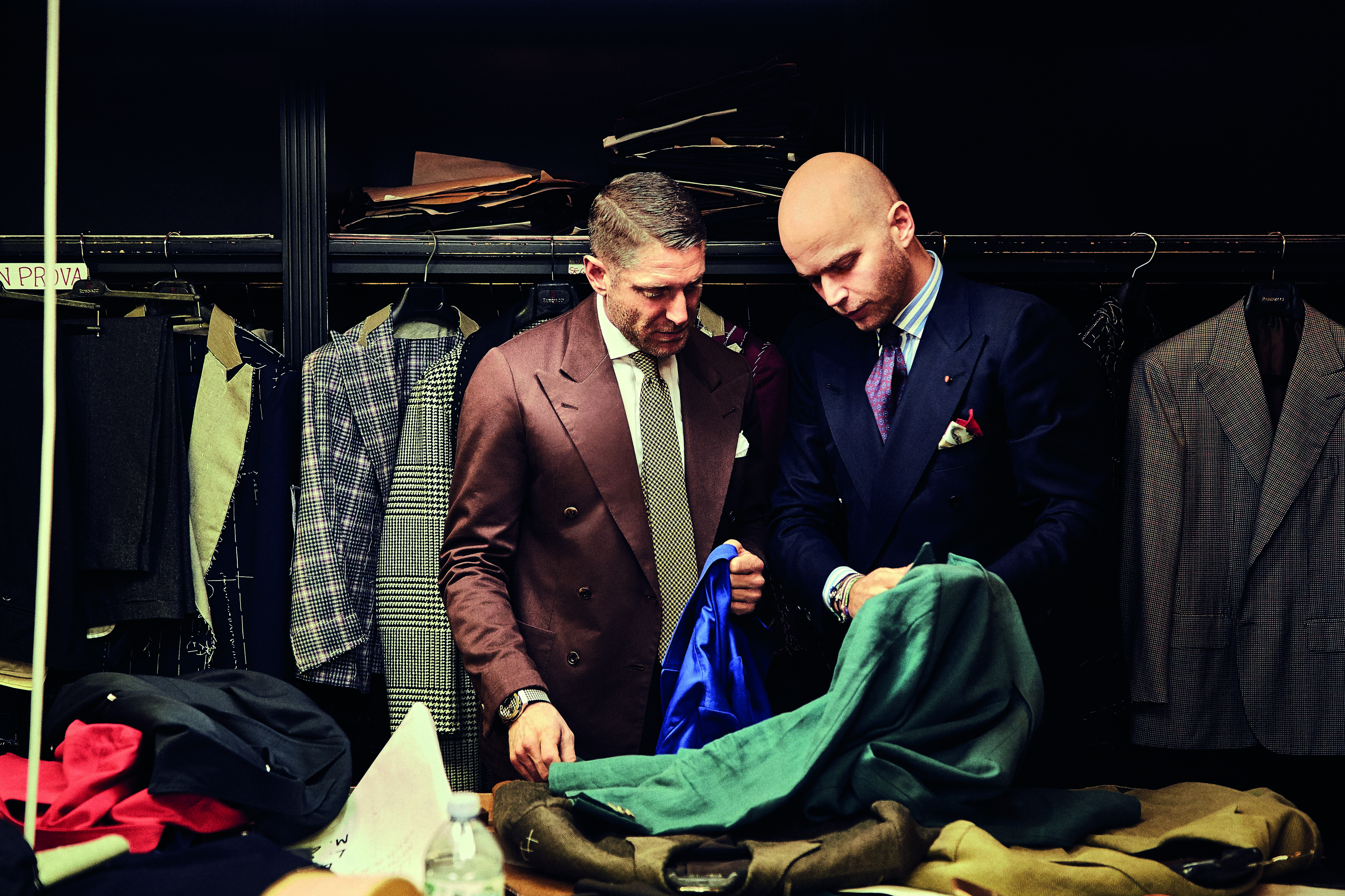 Lapo Elkann and Luca Rubinacci looking for fabric
