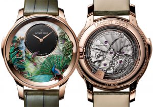 Tra i capolavori di Jaquet Droz nella collezione Automates sono diverse le edizioni del ripetizione minuti con automi. Recentemente a Ginevra, all’Hotel Kempinsky è stata presentato in prima europea la nuov edizione dedicata agli uccelli tropicali.