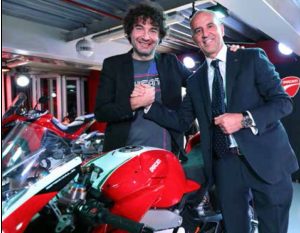 Da Tissot a Jaeger-LeCoultre, da JeanRIchard, a Tudor, siamo arrivati a Locman che il 14 novembre ha firmato un accordo di licenza con la Ducati presentandolo a Borgo Panigale. La collezione di orologi, nata da due realtà italiane, sarà pronta nel gennaio 2018 e si ispira alla nuova moto Panigale V4 Speciale.(nella foto con Alessandro Cicognani e MarCo Mantovani fondatore del marchio orologiero).