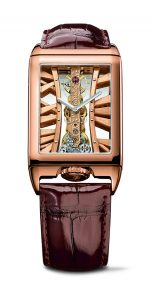 Dagli anni Ottanta il Golden Bridge è un’icona nella produzione Corum, a Baselworld 2016 è stato presentato con cassa rotonda, ma qest’anno è tornato rettangolare: mm 29,50×42,20, in oro rosa.