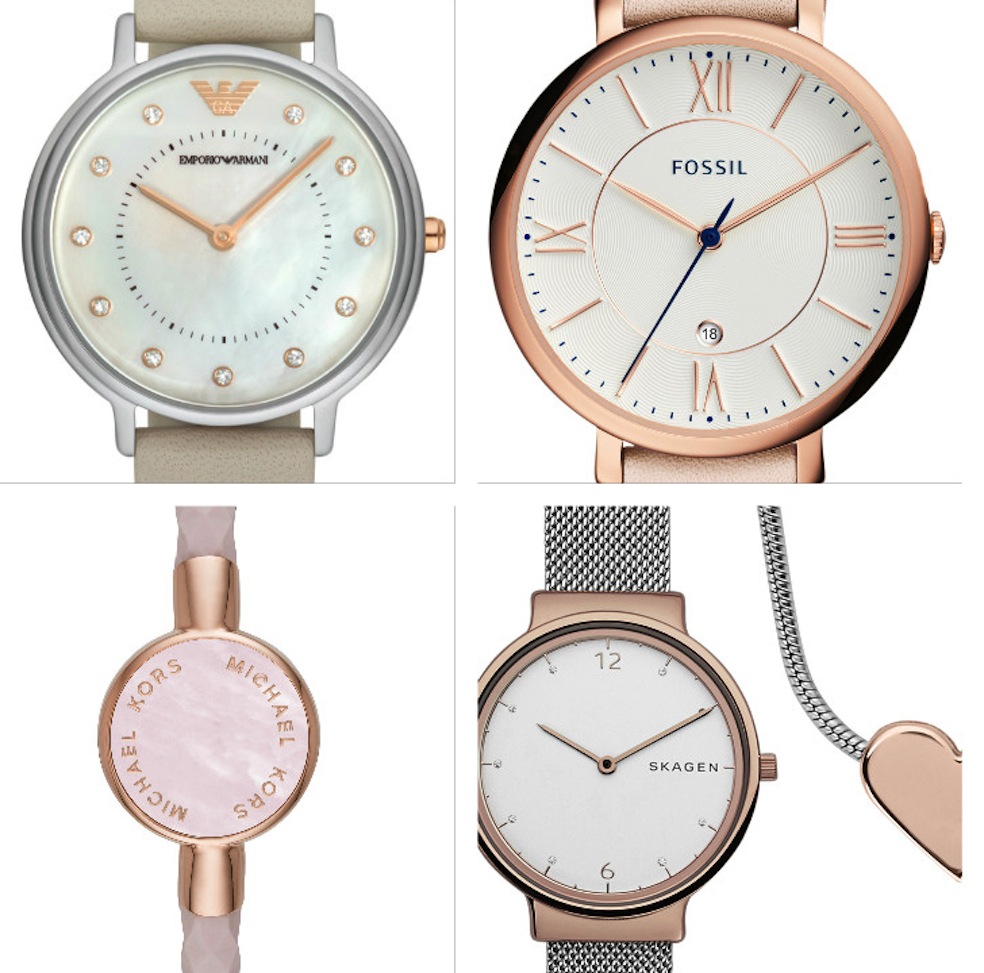 A prescindere dagli smart watch che questo Gruppo ha realizzato e che possono essere un bel dono per un San Valentino al maschile, la maggior parte degli orologi realizzati per il 14 febbraio privilegia la tonalità rosa, quindi modelli per polsi femminili. Ne abbiamo selezionati quattro (nella foto in senso orario Emporio Armani, Fossil, Skagen, Michael Kors). Quasi tutti i Marchi del Gruppo propongono anche bijoux coordinati, orecchini sfavillanti e pendenti da Armani e Fossil, cuori come quello di Skagen che si affianca all’orologio di cui riprende colore e tipo della maglia della catena.