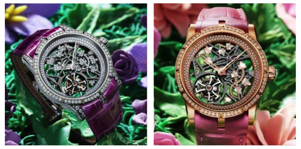 Entriamo nell’alta orologeria con orologi della collezione Excalibur Broceliande. Orologi preziosi non solo per l’oro delle casse ma soprattutto per i movimenti scheletrati e per le decorazioni legate al mondo floreale, in particolare all’edera e alla fama che l’accompagna, “per sempre”. Le foglie sono in madreperla realizzate e incise a mano, i rami si intrecciano con i componenti del movimento squelette. La versione più peziosa con cassa in oro bianco, ha le fogle incastonate con diamanti a pavé. Ovviamente i prezzi riservano questi orologi a pochi, ma è sempre bello vedere i risultati di una grande artigianalità. Ogni modello è realizzato in 28 esemplari ed è corredato dal Certificato del Punzone di Ginevra, come tutti gli orologi RD.