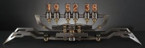 Per festeggiare l’anniversario la Galleria espone, in esclusiva (anche nelle sedi di Dubai e Taipei) un segnatempo avveniristico di Frank Buchwald, la Nixie Machine II, orologio da tavolo lungo m.1,20, che fa parte di una collezione di 12 esemplari ed è realizzato, come dice l’artista, secondo una “heavy engineering”; ore, minuti e secondi sono mostrati in tre paia di Nixie tubes prodotti da Dalibor Farny.