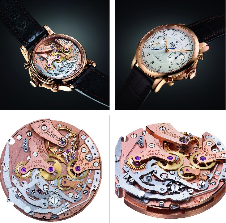 Il Tempostopp è equipaggiato con il nuovo Calibro 1699, carica manuale realizzato in house, il cronografo, con ulteriore stop, contatore per i 30 minuti e quadrantino dei piccoli secondi, ha la ruota a colonne e la funzione flyback; i rubini sono 28 e le A/h 21.600, molto accurate le rifiniture con incisioni artigianali sul ponte del bilanciere e su altri componenti, questi sono 236. La cassa, ø 43 mm è in oro rosa con vetro zaffiro e fondo a vista. Realizzato in 9o esemplari, si affianca a un altro orologio importante, un Ripetizione Minuti che nel 2011 fu realizzato per il ritorno della Marca a Glashutte dopo l’esilio forzato in Bassa Sassonia: