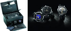 Ulysse Nardin products cover many fields (chronometers, painted dials, avant-garde materials, musical and astronomical movements). Rolf Schnyder, who bought the Brand in the Eighties (he died in 2011) has been the engine of U.N. watches second life; Trilogy of Time, born in 1985, was a Rolf’s idea developed by Ludwig Oechslin. Moonstruck arrived in 2009 and now there is a new Moonstruck Executive Worldtimer.