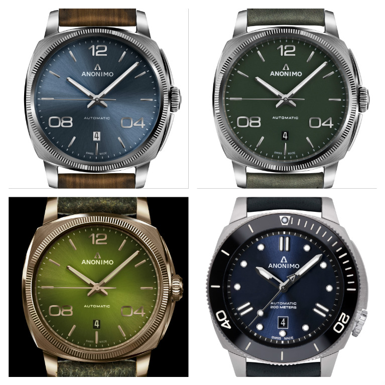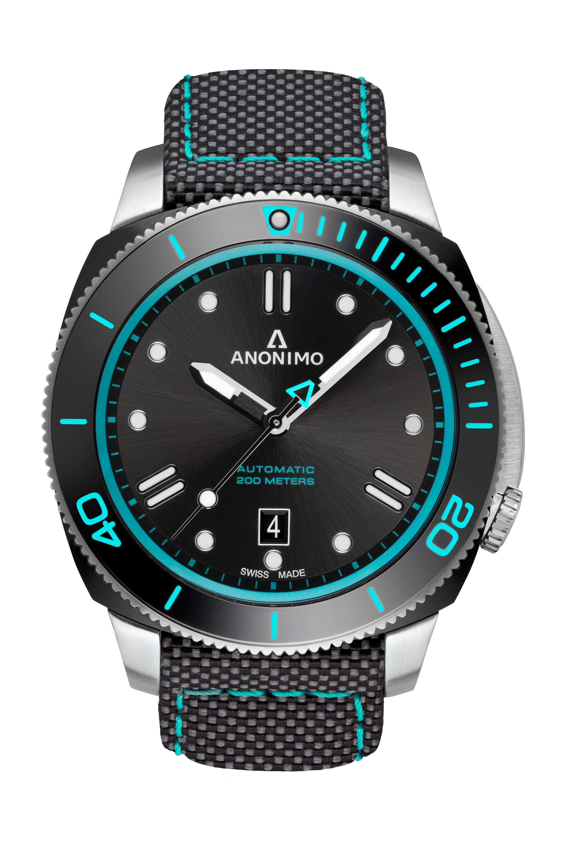 ll Nautilo Leopard Racing Team w.r. m.200 con i colori del team sui quadranti blu o nero e sul cinturino in cordura con dettagli in cuoio, è un automatico con movimento Swiss Made Sellita-SW200-1, cassa cushion in acciaio L316 ø mm 44,5 o 45,5, la corona è alle 12 e il fondo è personalizzato. Interessanti nella produzione di Anonimo anche i nuovi Epurato anche con la cassa in bronzo e quadranti di diversi colori. Anonimo infatti è stato se non il primo certamene uno dei primissimi ad impiegare questa lega molto “marinara”.