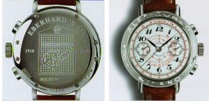 Un altro binomio che mancava nell’articolo, era quello dell’Alfa Romeo e degli orologi Eberhard &Co, sia con le collezioni dedicate a Tazio Nuvolari, non solo alle sue vittorie (come quella della Vanderbilt Cup), ma anche al record mondiale di velocità, 336 Km/h, conquistato dal Mantovano Volante il 15 giugno 1935 sull’Autostrada Firenze‐Mare su un’Alfa Romeo 16C Bimotore (l’orologio automatico con secondo fuso orario è stato presentato nel 2015); senza dimenticare il cronografo automatico R.I.A.R. edizione speciale del cronografo Replica, per gli iscritti al Registro Italiano Alfa Romeo, a ricordo del centenario della Marca lombarda nel 2010; questo modello in acciaio ha la lunetta personalizzata Alfa Romeo Milano e nodi sabaudi mentre sul fondo spicca il logo della Marca su un radiatore di un’Alfa Romeo d’epoca; sul quadrante scala tachimetrica a chiocciola e telemetrica all’esterno. In quell’occasione Eberhard &Co prese parte alle celebrazioni del centenario che, tra l’altro, videro arrivare a Rho-Fiera Milano 3000 Alfa Romeo storiche giunte da tutto il mondo.