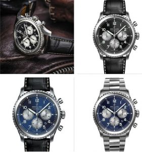 I cronografi Navitimer 8 B01 (l’8 si riallaccia al reparto 8 che nel 1938 la Breitling aveva dedicato all’aviazione, produceva allora segnatempo di bordo con carica 8 giorni) hanno ringiovanito la collezione; la cassa w.r. m.100, ø 43 mm è in acciaio (quadrante nero o blu) o oro rosso (quadrante bronzeo) con fondo in vetro zaffiro. il movimento di Manifattura è il Calibro 01 (28.800 A/h, carica automatica, riserva di carica 70 ore, certificato cronometro dal COSC). Anche se gli appassionati degli orologi storici forse preferiranno l’iconico Navitimer 1 Chronograph 46, case ø 46 mm in acciaio o acciaio e oro rosso, sempre con il nuovo movimento di Manifattura.