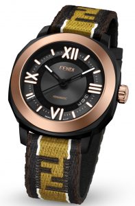 Proprio pochi giorni fa avevamo scritto della nuova importanza dei cinturini come arma promozionale (anche se da Hamilton sono sempre stati importanti nei Khaki Field) oggi oltre alla notizia di Omega pubblichiamo anche il cinturino di una collezione di Fendi Timepieces. Questo modello originale e facilmente intercambiabile grazie a un sistema brevettato (basta ruotare il fondello del segnatempo) è il Selleria Nastro che Fendi (azienda fondata a Roma nel 1925 da quattro sorelle e che dal 1988 ha iniziato a dedicarsi anche all’orologeria) ha realizzato per i polsi maschili. Il nuovo cinturino è ricamato con il logo FF – Fun Fendi, nei toni del marrone per il Selleria Man, orologio con cassa in acciaio annerito, lunetta trattata PVD oro rosa e movimento al quarzo.