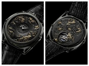 In entrambi i casi orologi se non museali quanto meno destinati alle più esclusive collezioni. Non mancano i riferimenti simbolici, dalla tigre che ricorda la ferocia di animali e uomini al dragone che impersona la saggezza, dalla carpa perseverante che se riesce a superare la cascata si trasforma in dragone. Entrambi gli orologi sono stati affidati all’abilità dell’artista Michéle Rothen.