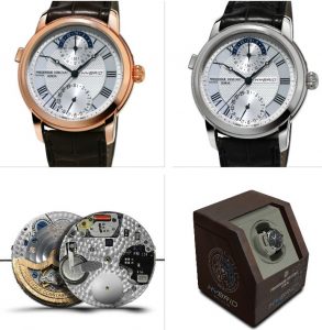Fra gli automatici meritano un accenno particolare i nuovi modelli dei quali è ambasciatrice Gwenneth Patrol, con la tradizionale finestrella per vedere il movimento alle 12 oppure con data alle 3. Per i più tradizionalisti l’Ore del mondo in acciaio ø 42 mm vetro zaffiro convesso e sul quadrante il mondo; il movimento è il calibro automatico FC-718 decorato a Perlage e Côtes de Genève, 26 rubini, 28’800 A/h, indicazione giorno/notte. In ambito sportivo dal 2004 la Marca ginevrina sponsorizza i raduni delle Austin Healey; il cronografo del 2018, per il raduno nella Foresta Nera, è in acciaio o placcato oro rosa con quadrante verde e contatori bianchi, argento e contatori grigi o blu navy e contatori bianchi; in luglio l’Healey Club France partecipa al rally “Le Mans Classic” con il team dei piloti Jan Lammers e Jaap Sinke su Austin Healey 3000 MK II 54 FAC di Jetze Visser.