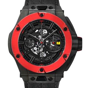 Così in attesa dello spettacolo di domenica pomeriggio parliamo di orologi, da quelli della Scuderia Ferrari all’ultimo Hublot che prende parte a un altro G.P. quello dell’orologeria a Ginevra, in corsa nella categoria Sport. Il Big Bang Red Ceramic è il risultato della collaborazione settennale fra la Marca orologiera e il team di Maranello. La lunetta nella nuova ceramica, molto più resistente di quella impiegata normalmente, ha un colore scontato: non poteva che essere rosso Ferrari; disegnata e prodotta in house riassume tutte le caratteristiche che distinguono i due prodotti, orologi e auto: stile, design, affidabilità, innovazione. Il nuovo Big Bang Ferrari è prodotto in edizione limitata a 500 esemplari, queste le caratteristiche: cassa ø 45mm in carbonio, quadrante in vetro zaffiro la cui grafica ha visto all’opera i team della Svizzera e dell’Italia che hanno ideato contatori nuovi e una nuova finestrella per la data ispirandosi al mondo dei motori, anche per la parte della meccanica del movimento; il Calibro di Manifattura HUB1241 cronografo flyback con ruota a colonne, 26.000 A/h, 330 componenti (diversi quelli in silicio) e una carica di 72 ore.