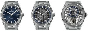 Dopo Pilot e sigari passiamo ai Defy e Defy Zero G, la G indica il Gravity system control, sistema brevettato da Zenith per una ancor più precisa indicazione del tempo; Defy Classic anche squelette, cassa 41mm in titanio o oro rosa, con il movimento Elite scheletrato, mentre la collezione Defy Zero G El Primero con cassa in titanio ø 44 mm con bracciale o cinturino, ha il movimento El Primero ad alta frequenza, 36.000 A/h, carica manuale scheletrato.