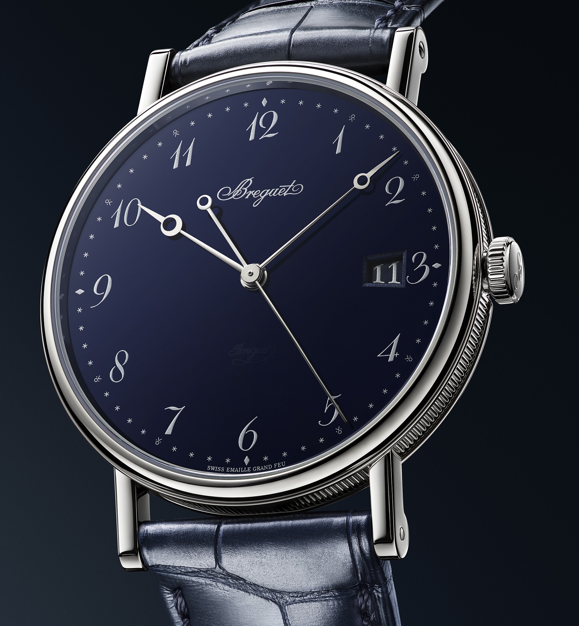 …e non un semplice blu, ma in smalto Grand Feu blu, una raffinatezza che ben si inserisce nello stile della Marca che qui propone una tonalità profonda tale da giustificare un ampliamento della già vasta scelta cromatica: il Blu Breguet.
