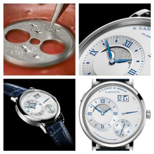 Every collectioner wishes to get a rare watch, and in order to gratify these clents Brand have enlarged limited editions of Anniversary watches. We remember Moritz Grossmann collection at Christie’s Auction while A.Lange & Söhne followed another philosophy, a special Anniversary watch every month from February to October 24th when 25 years ago Walter Lange and Gunter Blumlein unveiled the Lange1 collection.