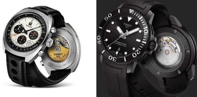 TISSOT, l’Heritage Navigator 1973 ricorda il primo cronografo legato alle gare in automobile, nel 1973 con Alpina e poi con Porsche sino alla F1. L’edizione attuale con cassa ø 40 mm in acciaio con dettagli bruniti e satinati, è equipaggiata con movimento Valjoux 7753 con massa oscillante incisa. Si ispira sempre agli anni ’60 anche il femminile Tissot Lovely Square al quarzo, cassa in acciaio trattata PVD oro giallo o rosa, mm20x20 e bracciale a maglia milanese o cinturino. Per gli amanti del mare infine interessanti il nuovo Tissot SeaStar 1000 Quartz Chrono w.r. a m.300, cassa in acciaio ø mm 40,5, lunetta in alluminio blu o rossa girevole in senso antiorario e il Gent Automatic black, cassa in acciaio 316L w.r. a m.300, lunetta in ceramica girevole in senso antiorario, movimento automatico Powermatic 80.
