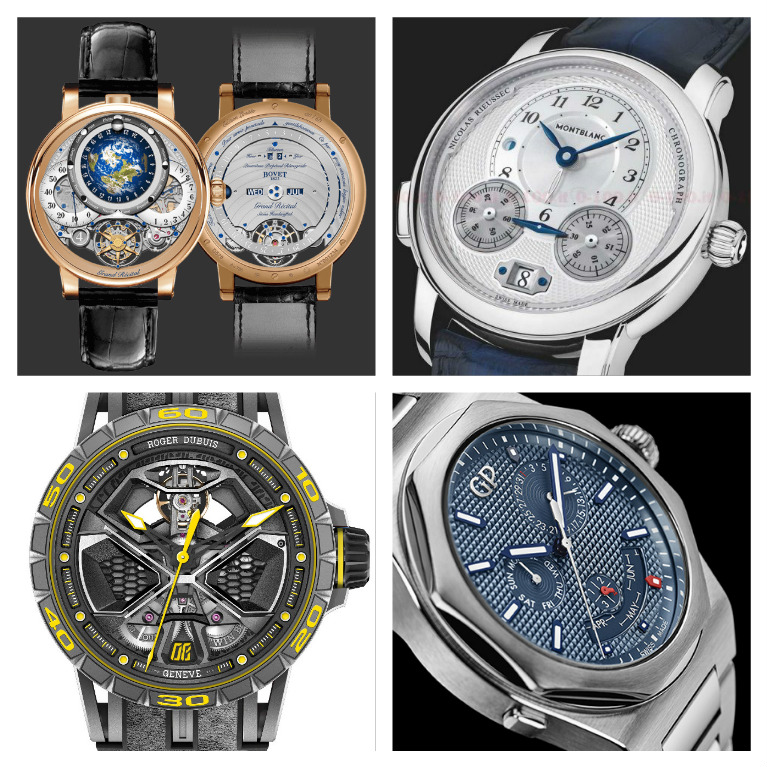 Bovet Grande Sonnerie, Montblanc Star Legacy Nicole Rieussec, Roger Dubuis Excalibur Hurracane Performante, Girard-Perregaux il Laureato Q.P. in acciaio