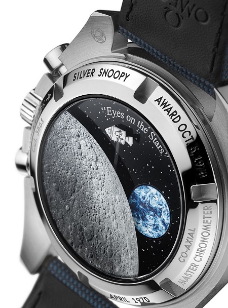 Per il 50° anniversario è stato realizzato lo Speedmaster Silver Snoopy Award che mostra un’ampia serie di riferimenti. Da Snoopy in veste d’astronauta sul medaglione d’argento a ore 9 sul quadrante dai contatori blu e lunetta in ceramica blu (con la scala tachimetrica con indicazione al 12 in smalto bianco) al fondello dove si è sbizzarrita la creatività dei tecnici e persino sul cinturino.