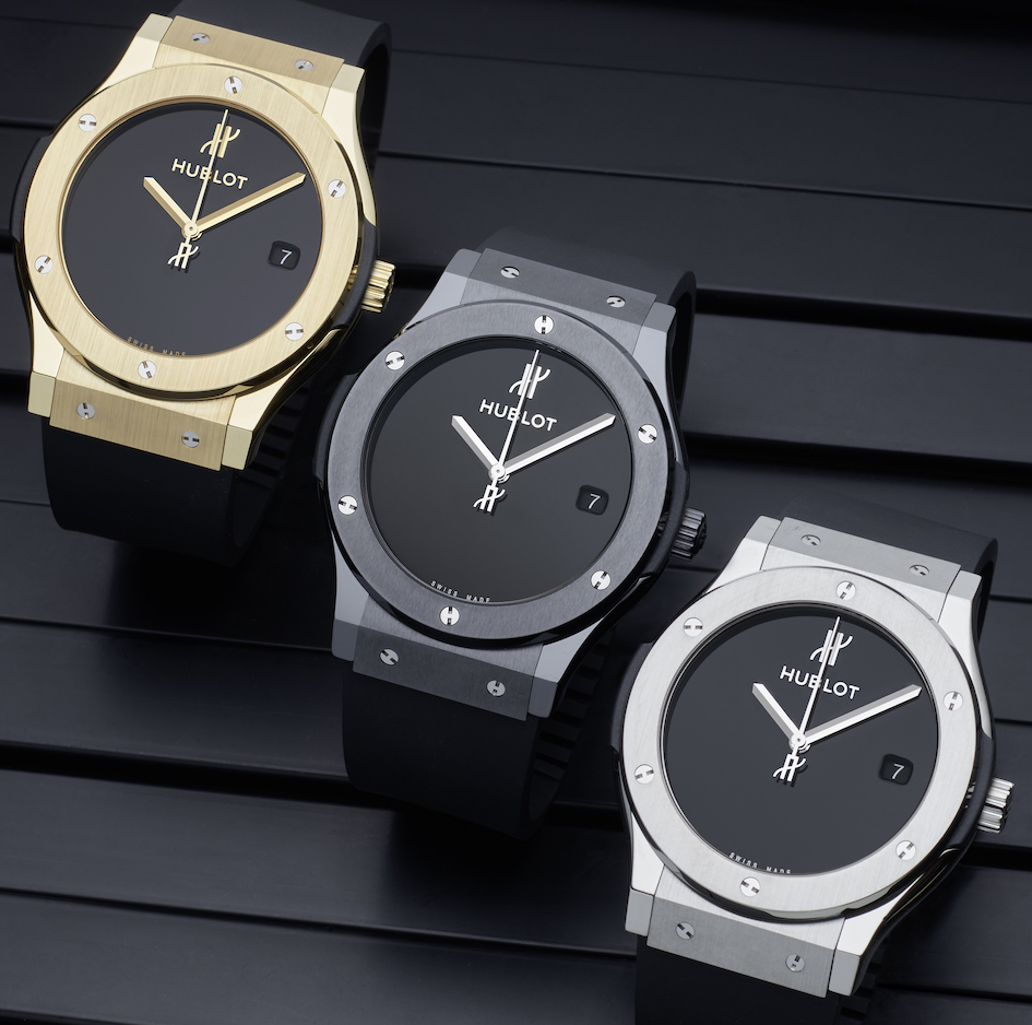 For Hublot 40th Anniversary three new Classic Fusion in limited edition (gold case 100, titan case 100 and ceramic case 100) all ø 45 mm with self-winding movement HUB1112.