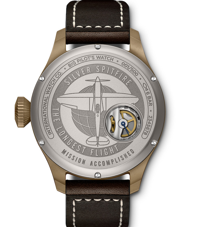 Il 5 Agosto 2019 due piloti britannici, Steve Boultbee Brooks e Matt Jones, decollarono dall’Aerodromo di Goodwood a bordo di un Silver Spitfire restaurato e fecero il giro del mondo conquistando il record della missione più lunga: 43.000 Km con soste in oltre venti nazioni. Oggi a questa eccezionale impresa la Marca di Schaffhausen che allora fu Official Time Keeper e sponsor dell’impresa, ha realizzato un Big Pilot’s Watch Big Date Spitfire Edition “Mission Accomplished” in tiratura limitata a 500 esemplari.