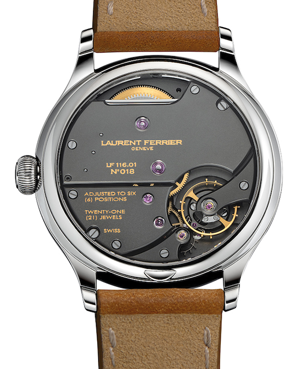 Nuova per questo solo tempo la cassa in titanio grado 5, lega che la Marca impiega per la prima volta, ma l’altra novità è il movimento di Manifattura Calibro LF 116.01 a carica manuale.