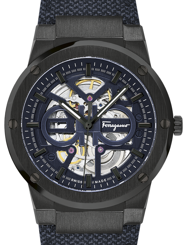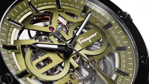 Nella giornata dedicata alla Terra Ferragamo presenta il suo più recente orologio l’F80 Skeleton Sustainable, in versione verde o blu, con cassa trattata IP nero ø 41 mm e movimento automatico scheletrato, Calibro DP24 Swiss Made, al quale si affianca in tiratura limitata anche una borsa.