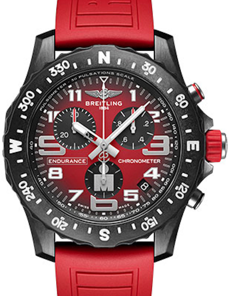 Breitling new Endurance Pro with brilliant red dial and strap, movement Superqartz Calibre 82, with Ironman logo on verso.
