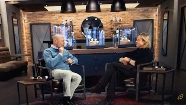 George Kern ha accolto oggi online Brad Pitt, insieme hanno parlato del Super Chronomat 44 Four Year Calendar che l’attore indossava, quello in acciaio e oro rosso con quadrante nero, lunetta in ceramica e cinturino in gomma traforata.