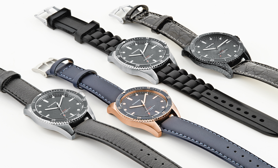 Per i quadranti in rame l’offerta vede colori tradizionali (bianco, nero, blu) sui quali spiccano indici geometrici luminescenti. Il movimento al quarzo è giapponese, i cinturini sono in pelle o in silicone, i bracciali in acciaio.