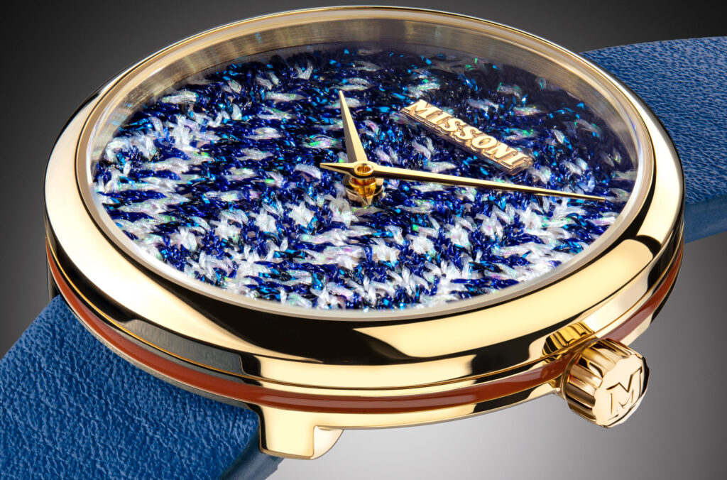 Nella collezione M1 orologi al quarzo Ronda Swiss Made, con cassa in acciaio (o trattato IP rose gold) ø 29 o 34 mm e quadrante con fondo monocolore o con fasce che mostrano il motivo a onde disegnate a zig zag come i famosi maglioni Missoni del passato. Sono disponibili anche confezioni regalo con un segnatempo e due cinturini in pelle oppure con l’orologio e il bracciale in parure.